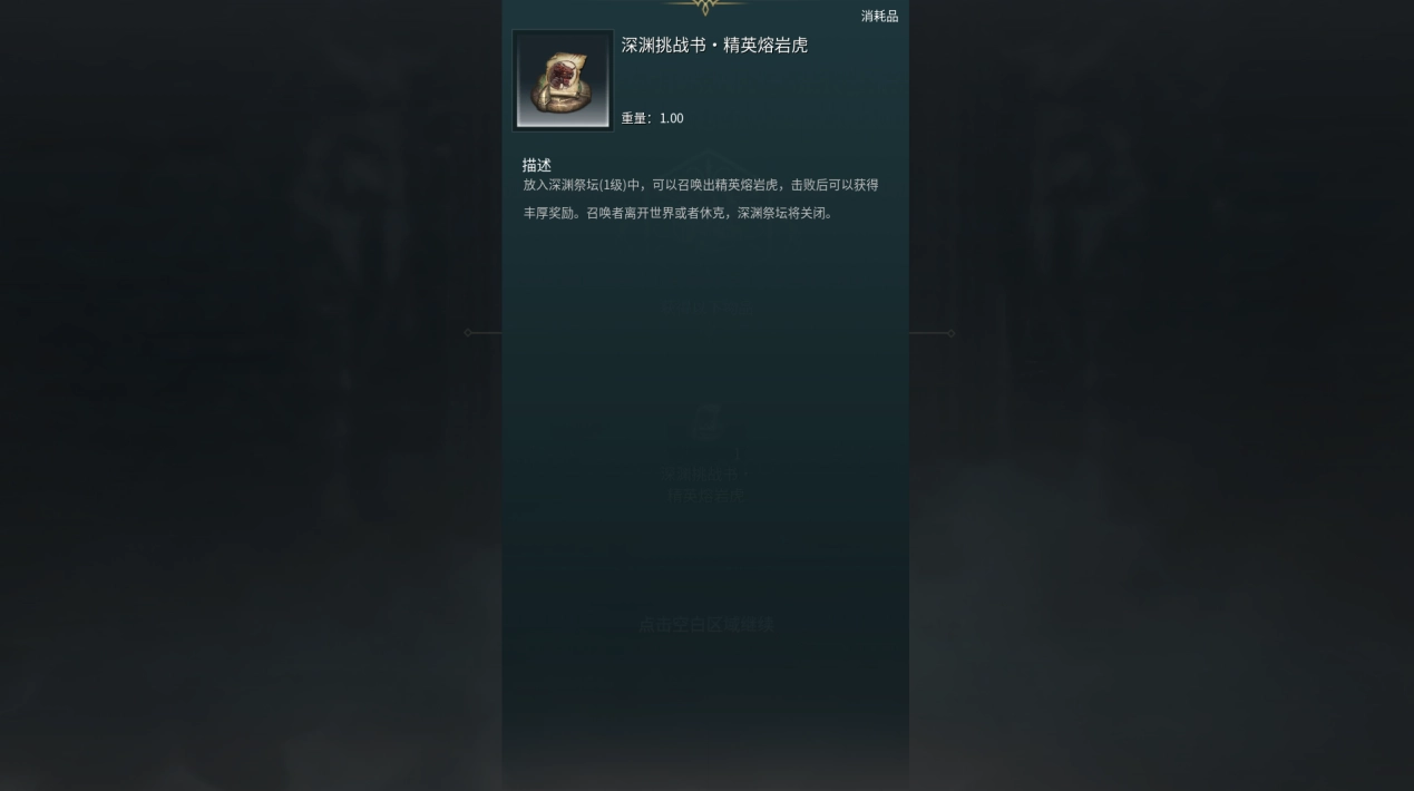 分析:通过每日的神秘悬赏,玩家能够获取精英熔岩虎的挑战书。在深渊祭坛中,玩家可召唤精英熔岩虎并将其击败,从而获得奖励,不过此奖励碎片数量相较于中立服要少。后续更新时,会增添个人领地放置深渊祭坛这一功能。
