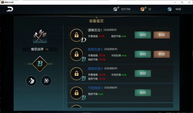 当装备改造达到四级,便能消耗一定材料鉴定出两条技能加强词条;六级时,可额外鉴定两条;八级时,又能再鉴定两条。如此,当前这件装备总共能鉴定出六条词条。