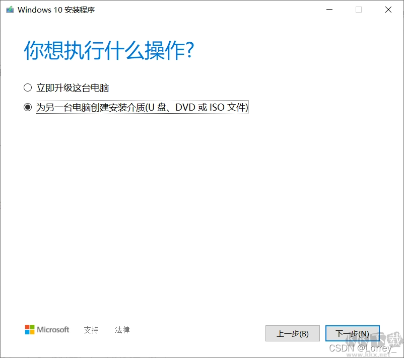 三、在“您想要执行什么操作?”页面,选择“为另一台电脑创建安装介质”,接着选择“下一步” 。