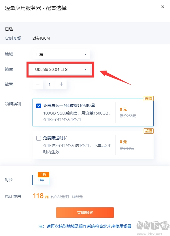1、在选择系统镜像的是需要注意,选择 Ubuntu 20.04 LTS 其他参数默认即可