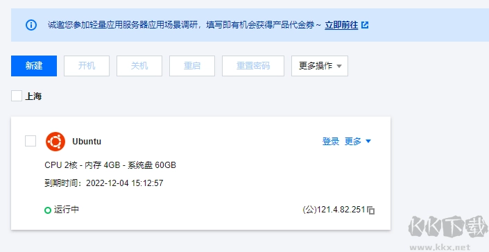 以下图片展示的是本教程所使用的腾讯云轻量应用服务器,配置为2核4G,月流量1000GB ,系统盘是60GB的SSD盘,宽带为6M,大约能满足5个用户使用,可参考:腾讯云服务器-tenxun.dechenyun.com