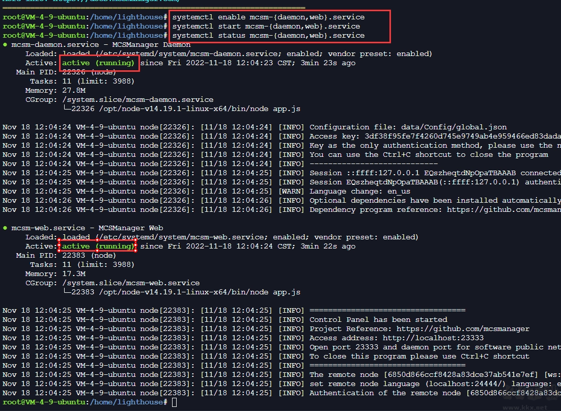 启动MCSManager服务:执行systemctl start mcsm-{daemon,web}.service 命令。