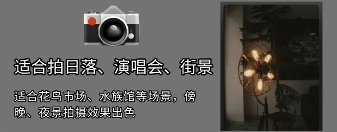 适合花乌市场、水族馆等场景,傍晚、夜景拍摄效果出色