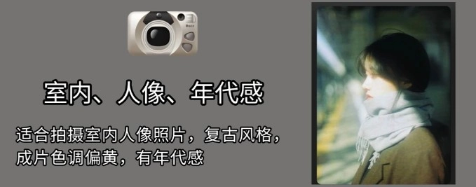 这款设备(或场景)很适合用来拍摄室内人像,风格偏向复古,拍出来的照片色调会带点黄,能营造出一种怀旧的年代感。