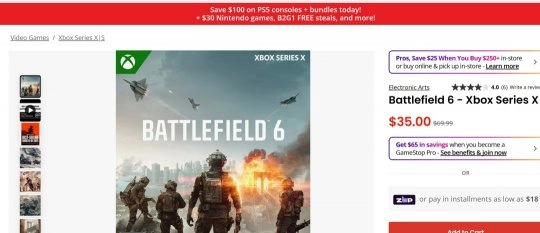 目前亚马逊平台上该商品已售罄,海外玩家可前往GameStop进行购买,其PS5版本与Xbox Series X|S版本的售价均为35美元。