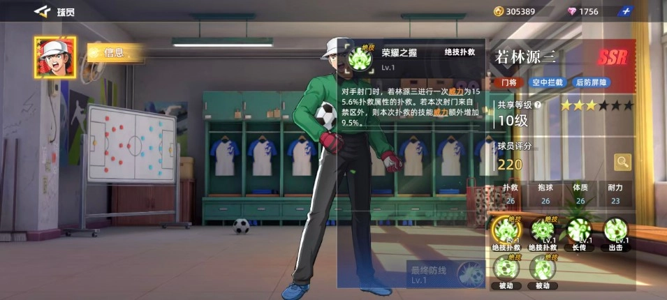 若林源三在游戏里司职门将,这种定位的球员在红卡中相当稀缺,因此他在门将位置上能提供出色的后防屏障效果。借助他的技能,玩家还能完成一些空中拦截动作。当球员评分达到220时,就能看出他目前的强度处于比较受欢迎的水平。基础属性方面,抱球26、体质26、耐力23、补救26的数值,都体现出这些能力能为球员带来优势。而在他的六维图中,所有数值均超过20,目前各属性基本没有低于20分的情况,所以他无疑是一位非常热门的门将选手。