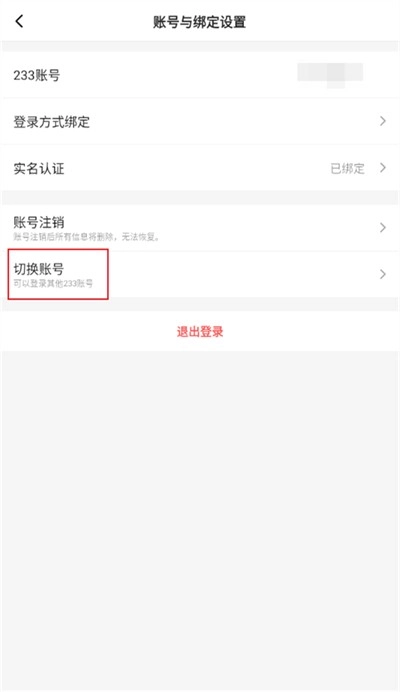 4、接着进入账号与绑定设置界面,在该界面中找到【切换账号】这一选项。