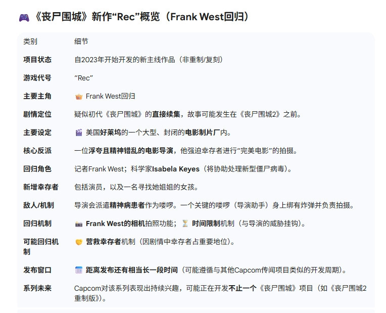 果然,外媒MP1st的消息源近期透露,《丧尸围城》系列又有一个重磅项目在开发中。这个项目不是重制版或复刻版,而是该系列全新的正统续作。MP1st还搜集到了不少关于游戏背景与剧情的细节信息。