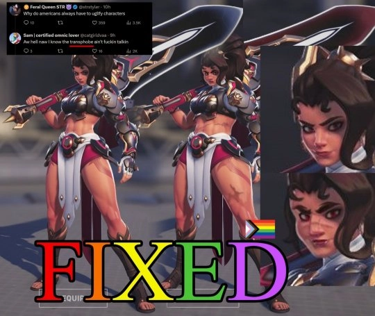 部分玩家提到,斩仇的设计里没有明显的战斗痕迹,还对其“沙漏型”的身材比例提出了批评。同时,有用户在社交平台分享了自己制作的“调整版”形象,或是给角色添加了一些瑕疵,或是对体型进行了修改,以此呈现出风格各异的外观效果。