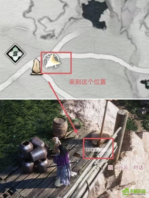 来到图中所示位置即可触发任务指引,接着找到谷云并与其对话,之后按照指引找到处于昏迷状态的穷奇师,完成这些步骤后就能获得面饰【穷极万物】了。
