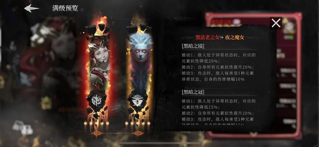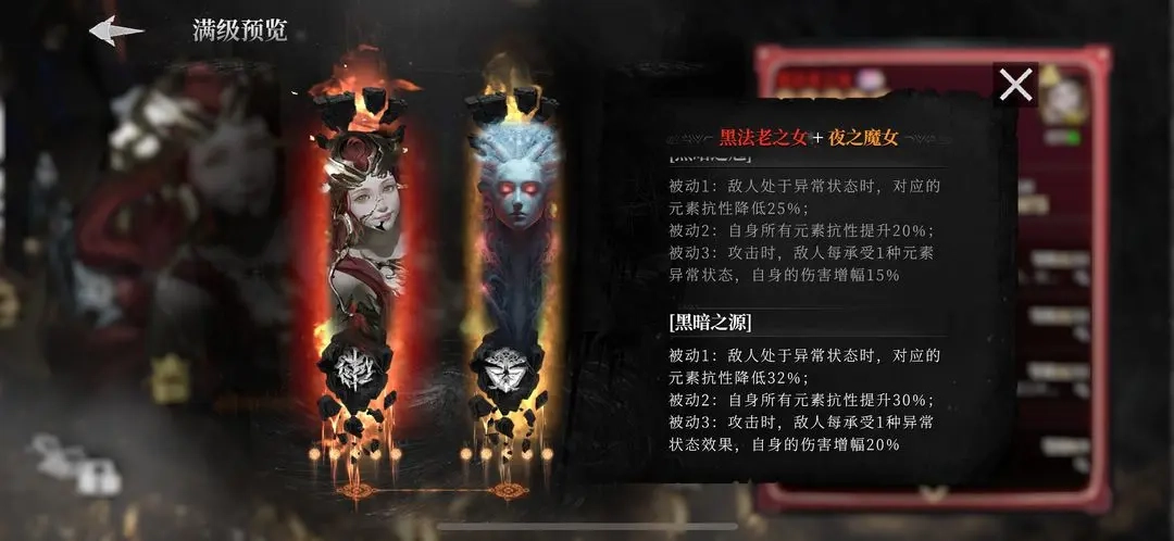 黑暗之镜羁绊在三级阶段会解锁伤害增幅机制,每当敌人身上存在一种元素异常状态,持有者就能获得10%的伤害提升,该效果叠加上限为40%的总增伤。而当羁绊升至满级(即黑暗之源)时,这一增幅比例可进一步提升至80%,堪称当前游戏内顶尖的伤害增益效果之一。