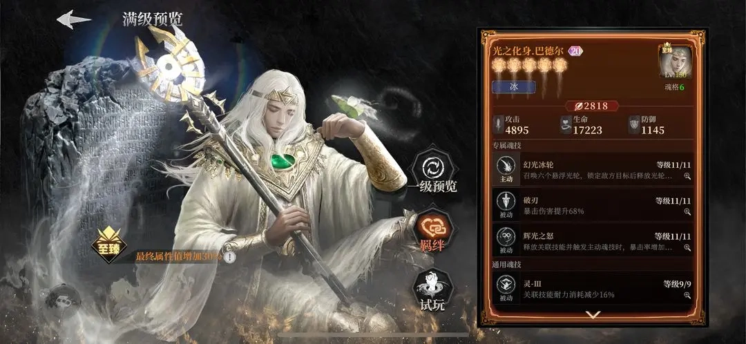 冰系魂核建议优先考虑光之化身巴德尔,它所带来的暴击率与暴击伤害加成,能够切实增强队伍暴击流派的整体作战能力。