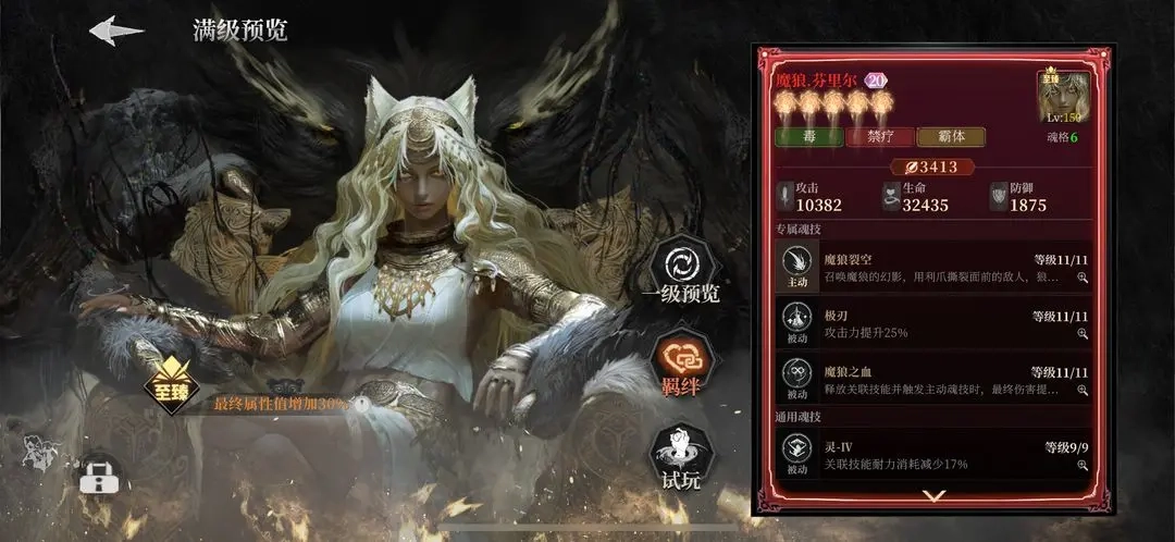 毒系位置可配置魔狼芬里尔,该魂核的攻击力与最终伤害加成适用于所有元素伤害类型。
