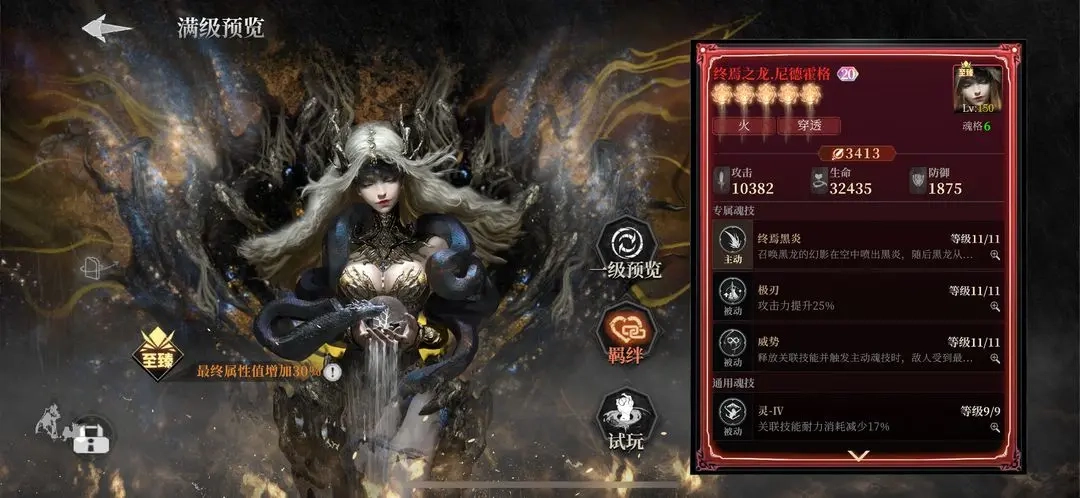 火系代表终焉之龙尼德霍格可提升敌人所受的最终伤害,其辅助功能与芬里尔相似。