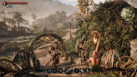 《地平线》原作中弓箭的使用占比高达80%-90%,但在MMORPG里仅沿用弓与矛的设定,在概念层面不太合理。因此开发团队初期与索尼(Guerrilla)协商时,将战斗比重调整为近距离与远距离各占50%。除了原作的矛和弓,团队还设计了近距离六种、远距离六种武器——预告里出现的大剑、双剑之外,远距离武器也不只有弓,还包含弩弓这类独特类型。