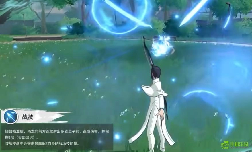 用来封灭后,雨龙会直接踩住敌人,同时借助敌人的力道向后猛力一蹬,跳到空中后对敌人射出箭矢造成伤害。另外,要是在石田雨龙的战场技生效期间使用该技能,当技能命中敌人后,还能增加雨龙积攒的战场技能量。
