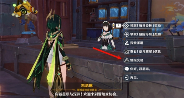 去挪德卡莱找凯瑟琳交谈,会出现“情报交易”这个选项。