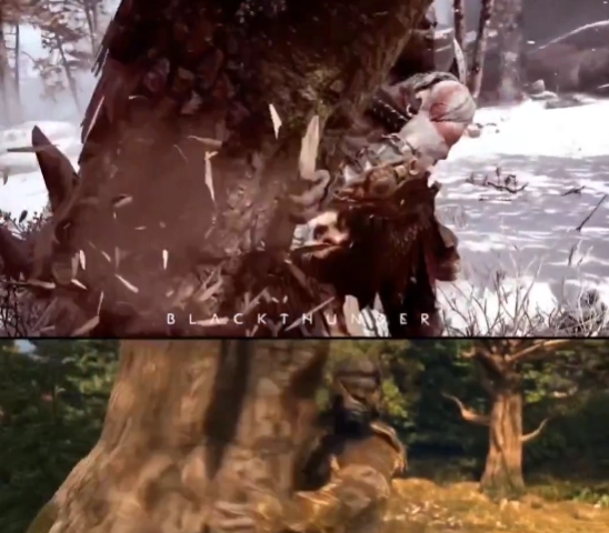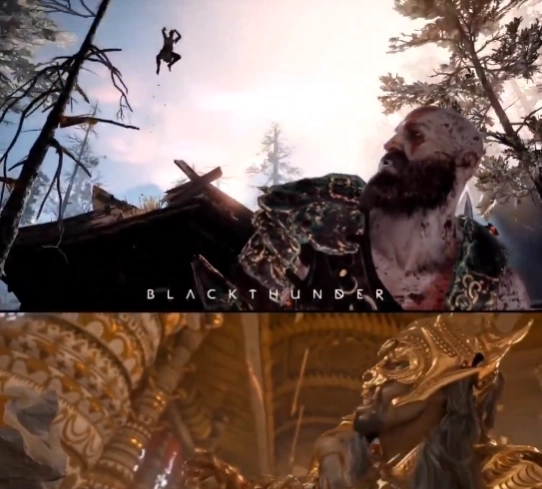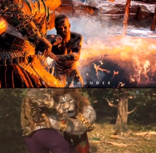 这一相似点最早是由X(原Twitter)平台的用户发现的,他们还附上了对比视频,把电影片段和游戏里奎托斯初次对决“不速之客”巴德尔的画面并列呈现出来。虽然动画在美术风格、角色造型以及背景布置上都有所不同,但整个动作的框架和Santa Monica Studio的原作几乎没什么差别。