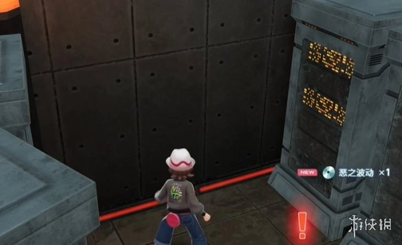4、沿着这条路往里面走,在最里面的房间里向左绕过障碍物,就能看到一个金色的宝可梦球,捡起它就能获得恶之波动的招式学习器。
