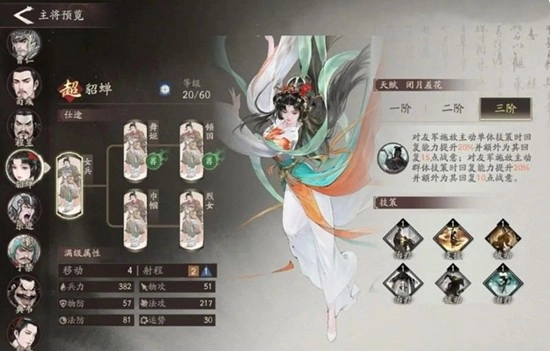 作为开局就赠送的武将,是不少玩家优先选择的培养目标。他有着强大的群体增益效果,天赋技能短歌行拥有远程补刀的能力,在前期战斗里表现出色,属于必须培养的武将之一。