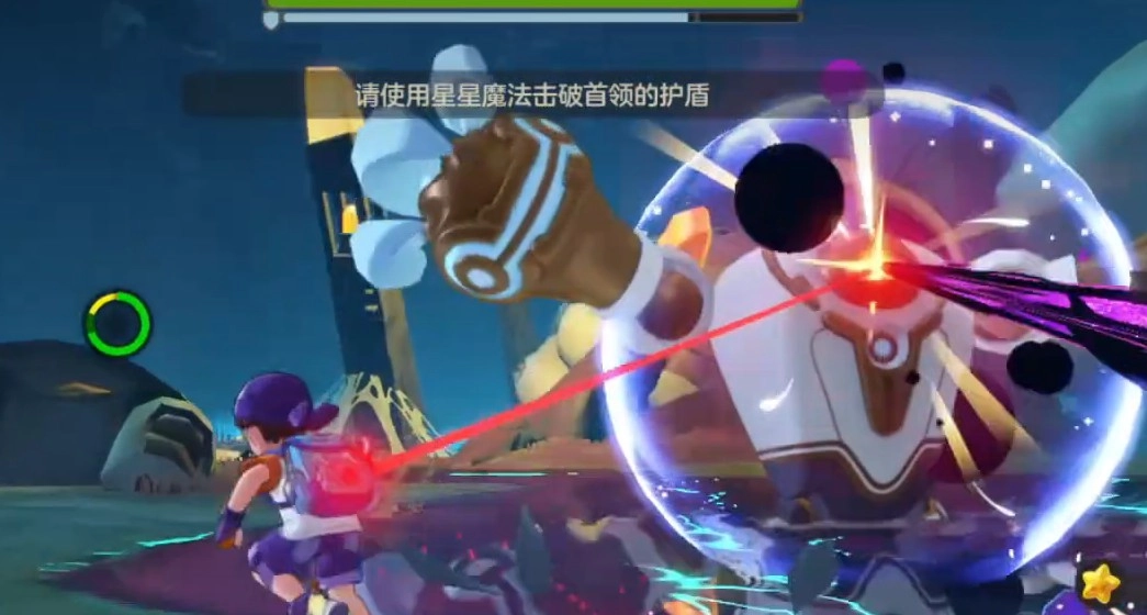 实际上你会留意到,数值出众的精灵,其特性未必是优势,圣剑骑士的特性就挺棘手。它会锁定目标并发射激光,玩家此时得持续移动来规避攻击。另外,首领具备范围攻击手段,会释放齿轮攻击,覆盖范围较大,稍不留意就很容易中招。说到护盾,圣剑骑士拥有五层,击破后会有增益效果附加。从这些设定能看出,它的防御相对而言不算特别高,对战时还是存在一定优势的。