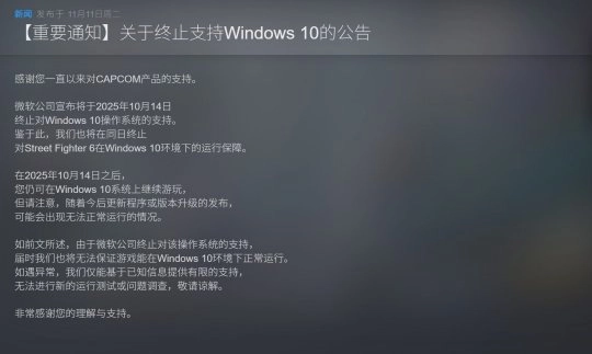 今年双十一期间,官方发布了关于终止Windows 10系统服务的公告