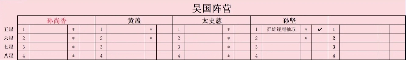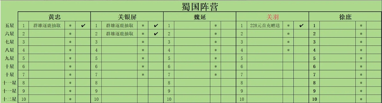 此外,附上在【割据一方】计划中选择蜀汉后,前期各阵营的升星培养计划,以供参考。