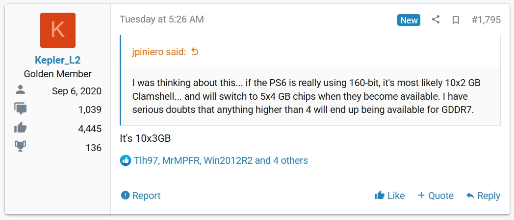 根据爆料人Kepler_L2的消息,PS6将会搭载十组3GB规格的GDDR7显存模块,整体显存容量达到30GB。这一容量差不多是当前PS5所配备的16GB显存的1.9倍,推测是为了适配近期部分游戏在显存与内存方面不断提升的需求而进行的设计。