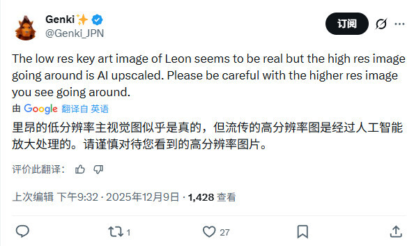 随后,《生化危机9:安魂曲》的制作人熊泽雅人回应称,近期网络上流传的有关里昂会在游戏中登场的相关泄露信息“全都是虚假消息”。