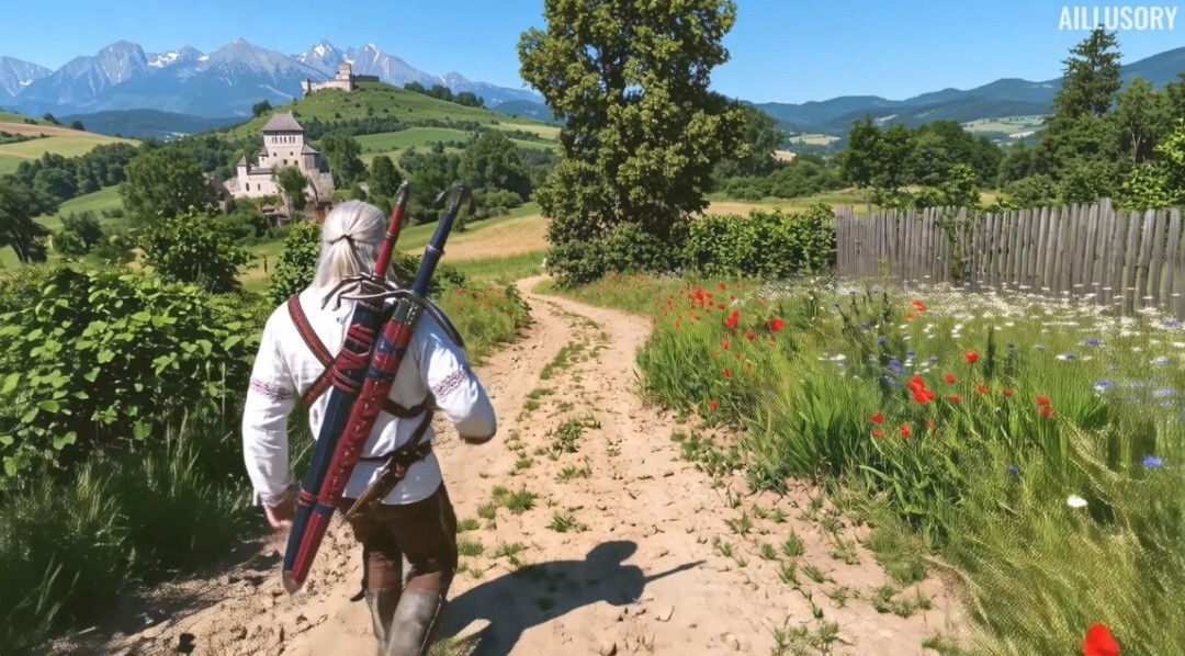 在Aillusory呈现的画面里,叶奈法与杰洛特的形象逼真到几乎无法和现实中的演员区分开来。猎魔人在威伦的这段旅程,看起来更像是高成本的实景拍摄作品,而不像是2015年那款游戏的实机运行画面。