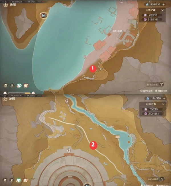 1、普通巨兽点位:在巨兽观测点的岩村遗址传送点周边,岸边就能看到