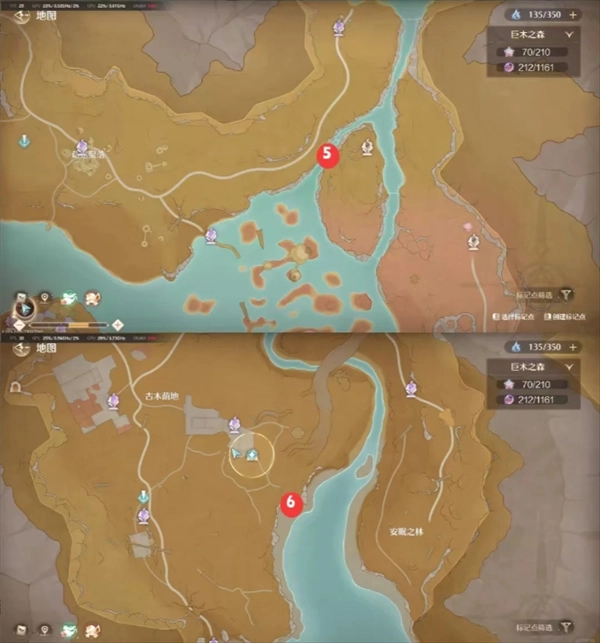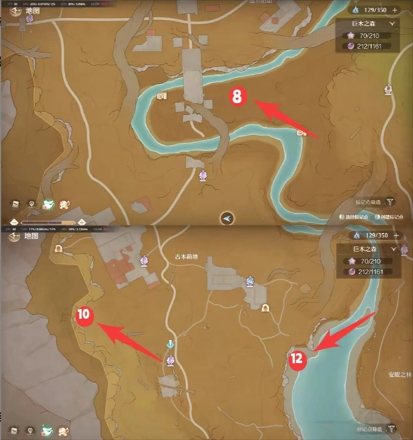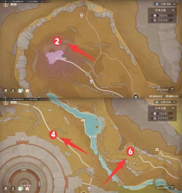 5、冬桠巨兽点位:位于安眠之林,传送到对应传送点后直走到底