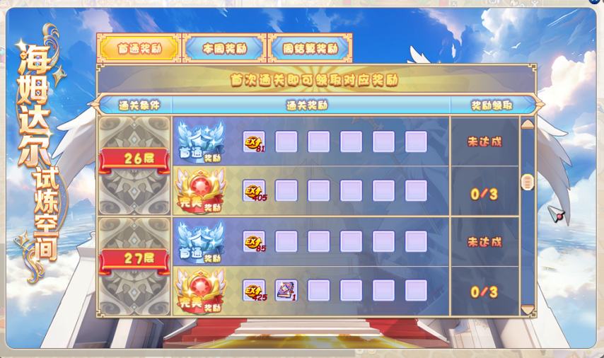 通过所有试炼的勇者,将获得海姆达尔的认可,并得到来自阿斯加德神域的珍贵馈赠。这里不仅有首通奖励、完美奖励、本周奖励和每周结算奖励,奖励中的徽章还能在海尔达姆试炼宝库中兑换各类道具与珍宝。