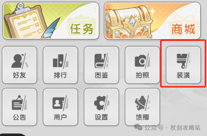 我们可以在菜单栏找到新增的“装潢”功能,然后就可以选择我们的家园皮肤啦~