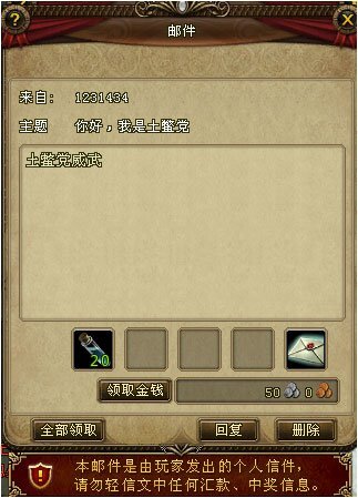 点击邮箱进入对应界面后,找到并选择“收件箱”,就能查看所有已接收的邮件。用鼠标左键点击任意一封邮件,即可打开查看其具体内容;若邮件带有附件物品或金钱,可点击相应图标进行领取,也能直接使用“全部领取”功能,一键获取该邮件内的所有附件。