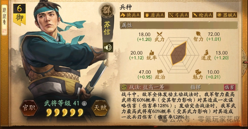 我军智力最高,对敌军造成128%谋略伤害