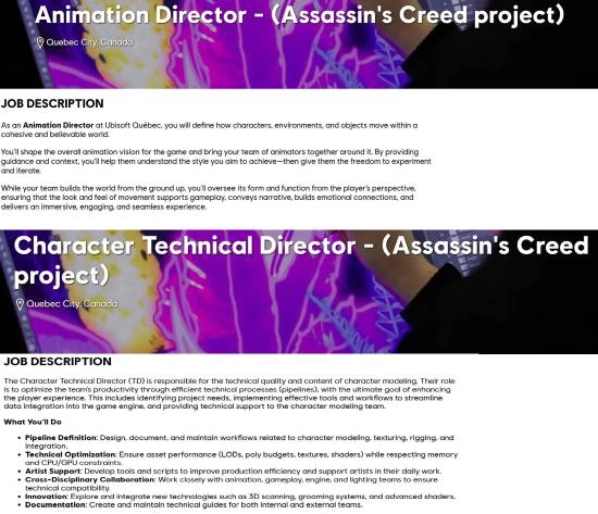 尽管这两则招聘启事都未披露太多游戏相关的细节,但鉴于《刺客信条:影》已发售有段时间,育碧魁北克工作室此刻着手规划下一部《刺客信条》系列的大型作品,也是合乎情理的。