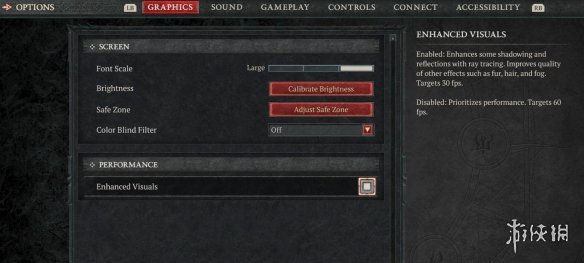 进入“选项”→“画面”(也可能显示为“影像”或“性能”),找到与“视觉效果强化”或“光线追踪”相关的设置项。
