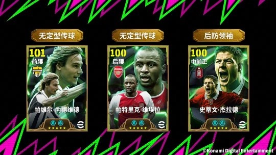 双增能史诗级球员帕维尔·内德维德(特殊技能:无定型传球)、帕特里克·维埃拉(特殊技能:无定型传球)与史蒂文·杰拉德(特殊技能:后方领袖),即将通过【年度最佳阵容 最佳中场 特惠礼包】活动重返实况足球赛场!参与活动不仅有机会获取这三位传奇中场,还能赢取多名强力精选球员!各位球迷玩家们,可千万别错过这次难得的入手机会!
