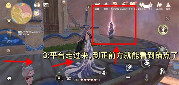 3、沿着平台往前走,走到正前方的位置就能看到锚点了