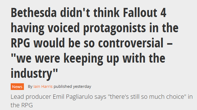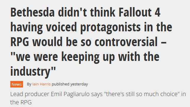 在2015年,游戏主角配备配音在行业内本就十分常见,《辐射4》不过是顺应当时的潮流趋势,却意外引发了大量玩家的争议讨论。