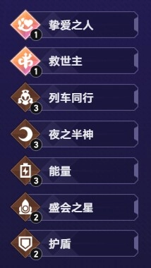 1位挚爱之人、1位救世主、3位列车同行者、3位夜之半神、3股能量、2位盛会之星、2个护盾