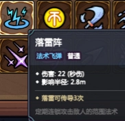 【落雷阵】有着范围广泛且具备传导性的特点,用来应对大片怪物十分合适;它和【冥蛇】类似,也很适合叠加毒伤效果。当升级到+或++状态后,【落雷阵】还能对单个目标造成额外伤害,所以在开荒阶段使用也同样适用。