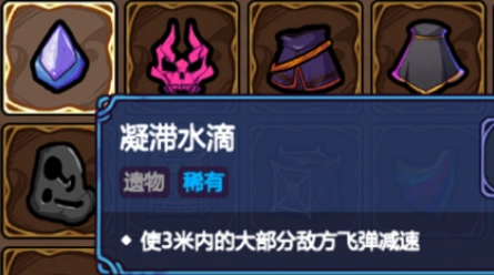【凝滞水滴】附带的屏障可以减慢附近弹幕速度,对于不善走位的人来说非常使用,推荐选取。