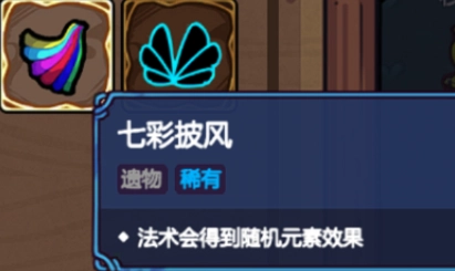 【七彩披风】可以为你的法术附加随机效果,提升伤害的同时还会让法术变得很好看,也是可以选择的稀有遗物。