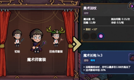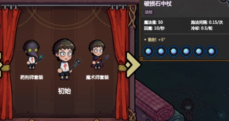 刚接触游戏的玩家可选套装有限,前期可以先用初始套装或者魔术师套装去理解游戏。