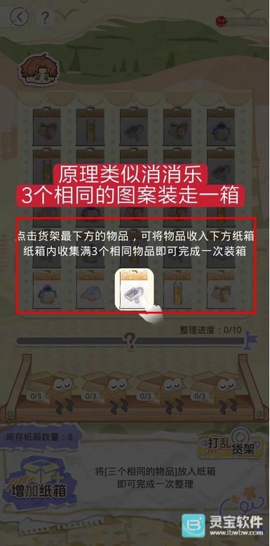 2. 整理时若纸箱数量不够,可参与【增加纸箱】关卡,成功通关就能获得整理所需的【纸箱】。
