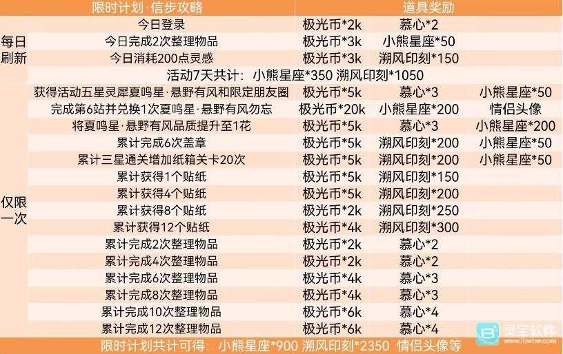 限时计划总共可获取:小熊星座×900