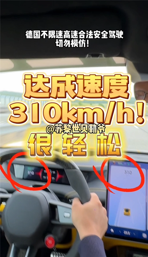他还特意提及德国高速公路的部分路段是不限速的,同时强调“要遵守交通规则,时刻注意安全”。