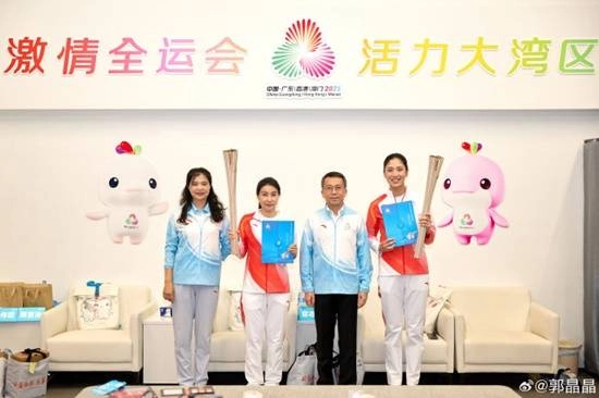 据四川观察消息,2025年11月9日第十五届全运会开幕式上,郭晶晶以第三棒火炬手的身份,与网球选手王欣瑜一同完成了“踏水传火”的火炬传递环节。